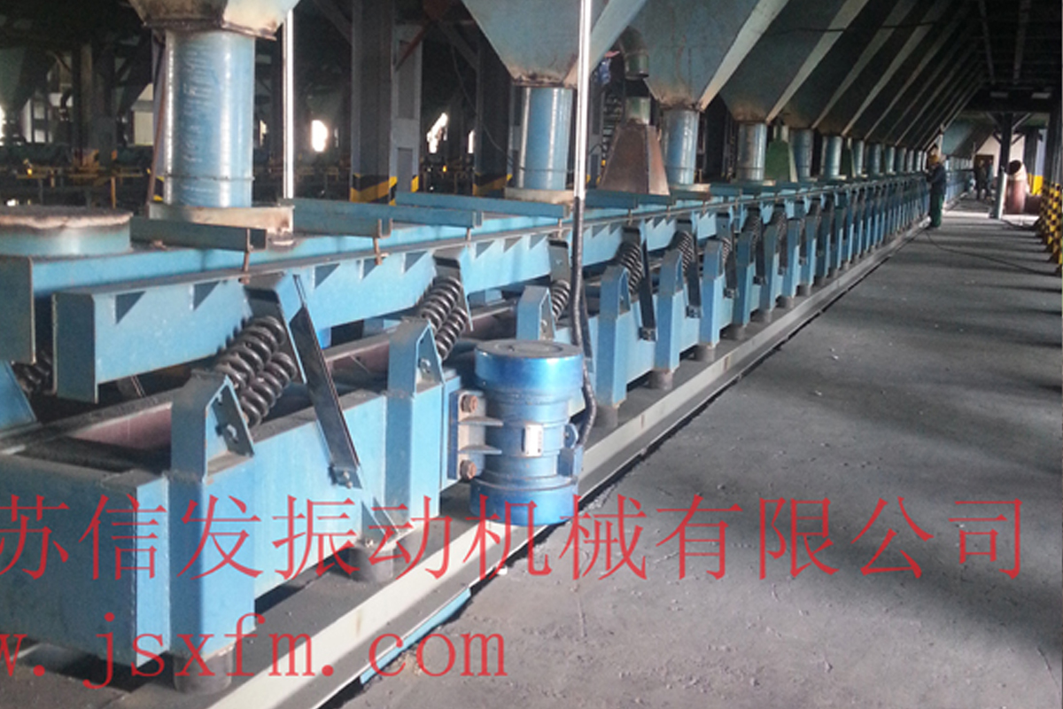 慣性振動熱料輸送機是一種兼有鎖風功能的長距離振動輸送機設備,采用兩臺振動電機作為激振動源,運用自同步原理,兩臺振動電機反向轉動,使輸送機底部平衡架產生往復振動,經過主振簧與導向板簧的作用,帶動上部輸送槽振動,從而達到輸送物料的目的。